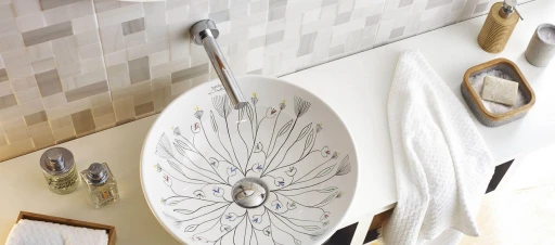 • umywalki w wielu odsłonach stylistycznych – od minimalistycznych po ręcznie zdobione,