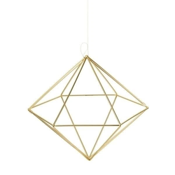 Metalowa dekoracja ścienna Prisma składa się z 6 elementów w kolorze mosiądzowym. Dzięki plastikowym nakładkom i taśmie dwustronnej możemy je zamocować na ścianie. Z poszczególnych elementów można także stworzyć 3 figury przestrzenne, które łączy się plastikowymi nakładkami.