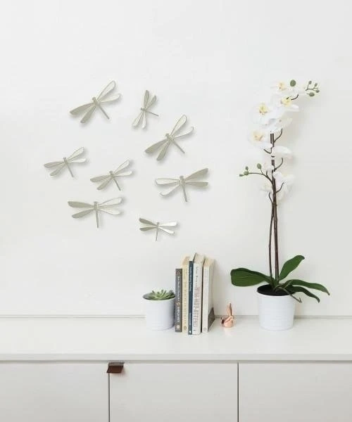 Komplet Wallflutter marki Umbra składa się z 8 trójwymiarowych ważek o różnych rozmiarach.