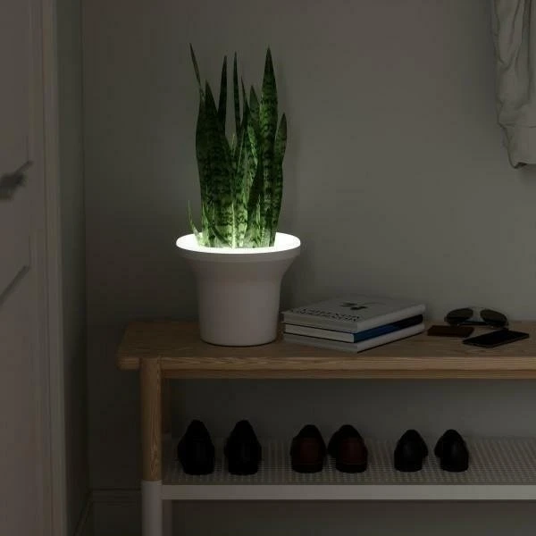Doniczka Ora marki Umbra została wyposażona w specjalny wyjmowany pierścień LED, którego zadaniem jest delikatne podświetlenie rośliny.