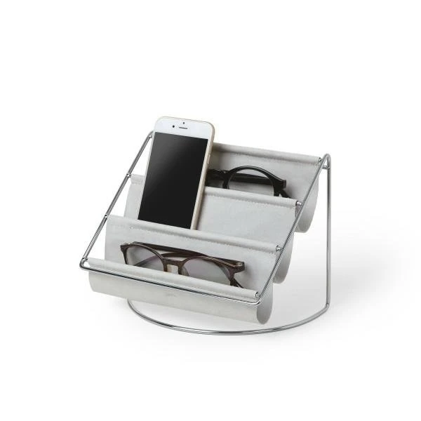 Organizer Hammock to mały hamak na okulary, telefon komórkowy, klucze i inne drobiazgi, które zazwyczaj kładziemy nieświadomie w różnych miejscach w domu. Na metalowym stelażu umieszczone są trzy materiałowe kieszonki, w których drobne przedmioty będą trudne do przeoczenia. Organizer można zamontować na ścianie w przedpokoju, postawić na szafce nocnej w sypialni lub też przechowywać w szufladzie biurka. Jest mały i poręczny, a Twoim okularom i wszelkim drobnostkom będzie w nim naprawdę wygodnie!