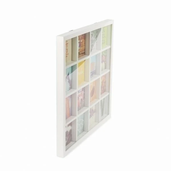 Wykonany z lakierowanego drewna produkt, składa się ramki, podzielonej na mniejsze ramy. Dzięki temu w jednym ekspozytorze z łatwością zmieścimy aż szesnaście ulubionych zdjęć (o formacie 10,2cm x 10,2cm). Nietypowa forma ekspozytora sprawia, że będzie on doskonałą ozdobą każdego wnętrza! Możemy w niego włożyć nie tylko pamiątkowe zdjęcia, ale także pocztówki, rysunki, notatki i inne przydatne akcesoria. Znakomicie uzupełni przestrzeń nad biurkiem w pokoju, gabinecie czy pracowni i z powodzeniem zastąpi tradycyjne tablice i ramki na zdjęcia. Ze względu na wysoką jakość wykonania, ekspozytor doskonale sprawdzi się jako praktyczny i estetyczny prezent.