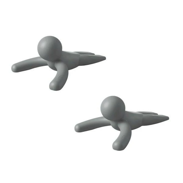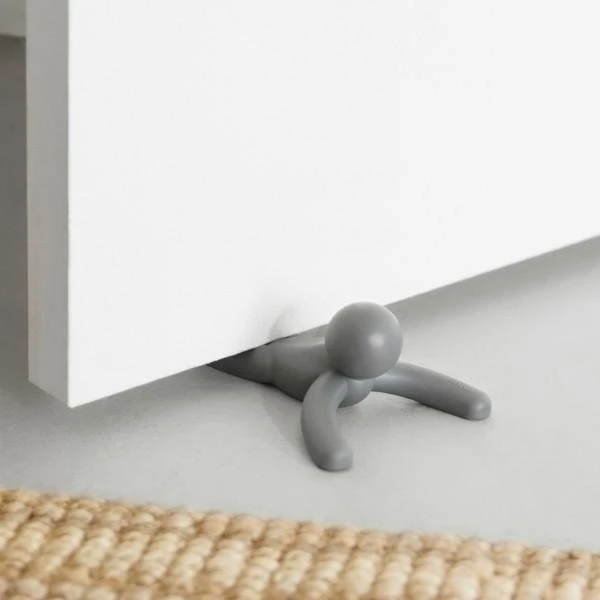 Pomysłowy ogranicznik pomaga utrzymać otwarte drzwi, ponieważ wydaje się, że ludzik Buddy utknął pod nimi. Wykonany z miękkiego w dotyku tworzywa Buddy Doorstop nie będzie się ślizgał i nie zarysuje podłogi, a drzwi pozostaną zablokowane tak, jak będziemy chcieli. Zestaw zawiera dwie sztuki