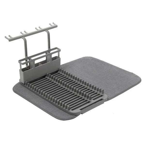 Udry składa się z maty absorbującej wilgoć oraz stojaka na naczynia, sztućce i kuchenne akcesoria.