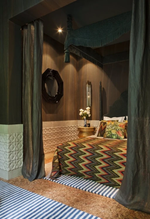 Połączenie estetyki hiszpańskiego projektanta wnętrz Pepe Leal oraz portugalskiego producenta luksusowych mebli Boca do Lobo zaowocowało wnętrzem, w którym różnorodne materiały i faktury spotykają się z feerią barw.