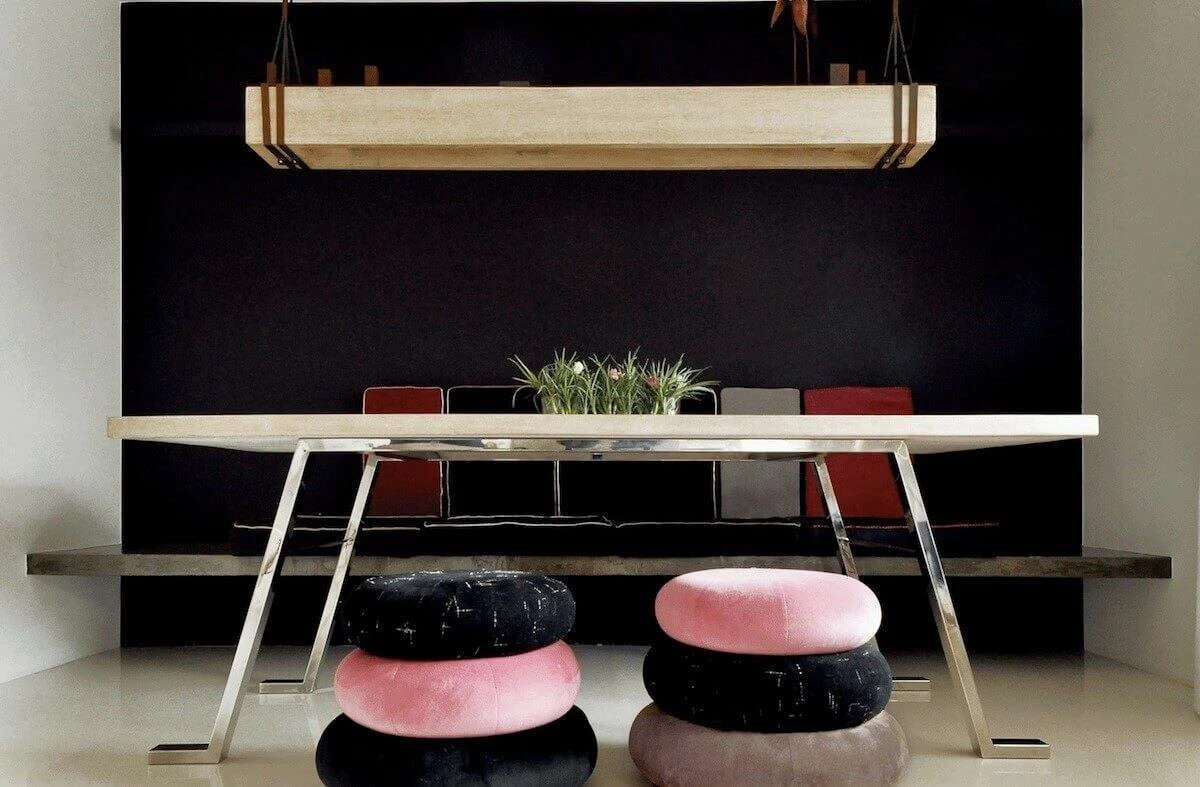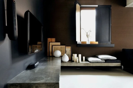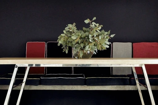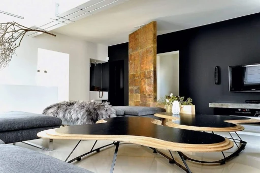 “Trafiliśmy na inwestorów bardzo otwartych na niesztampowe rozwiązania. W realizacji pomagała właścicielka - osoba z artystyczną duszą. Nie trudno było przekonać ją do rdzy (konstrukcje nad stołem i blatami w kuchni), betonu (ławy w salonie i jadalni), żywic na podłogach i ścianach (kuchnia, łazienka), postarzanego drewna (okiennice, stół, blaty), czy pozostawienia metalowej belki. Dzięki użyciu takich materiałów, w połączeniu z bielą i czernią, wnętrze pozostało neutralne, a jednocześnie otwarte - w dość łatwy sposób można zmienić jego klimat. Kilka dodatków wystarczy, aby je rozweselić” - mówi architektka.