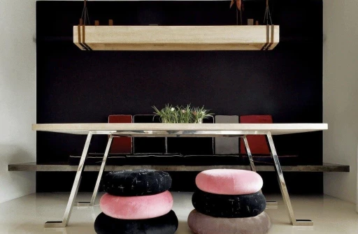 Jak w każdym projekcie pracowni wiele z mebli zostało zaprojektowanych i wykonanych osobiście przez autorów koncepcji albo zaprzyjaźnionych rzemieślników. Rękodziełem są stoły, lustra (poza wspomnianym z salonu, zwierciadło zawieszone na linkach w łazience), konstrukcje nad blatami (własnoręcznie odbarwiane) oraz lampa w jadalni z miejscem na świece.