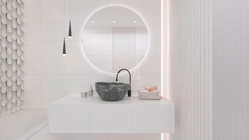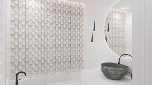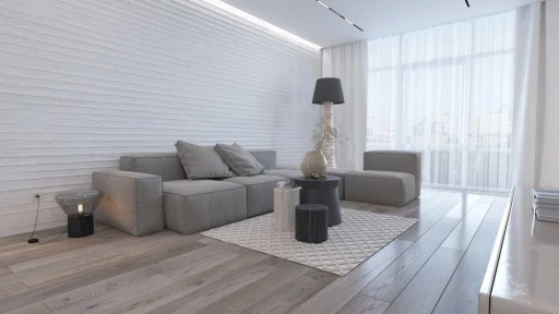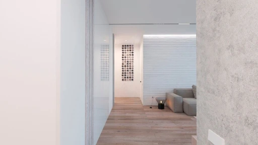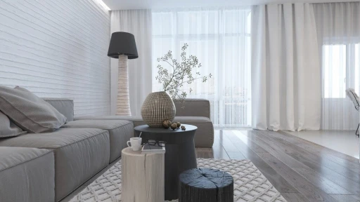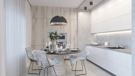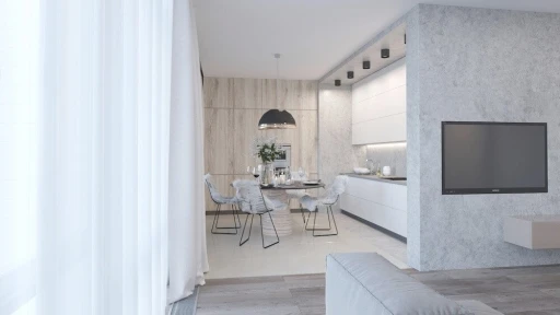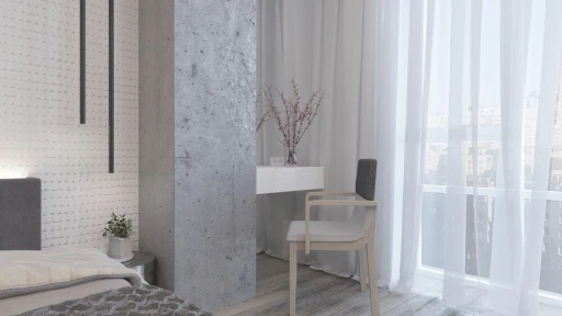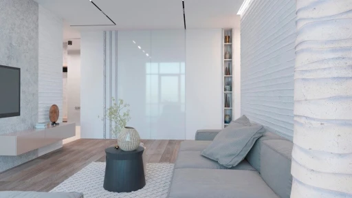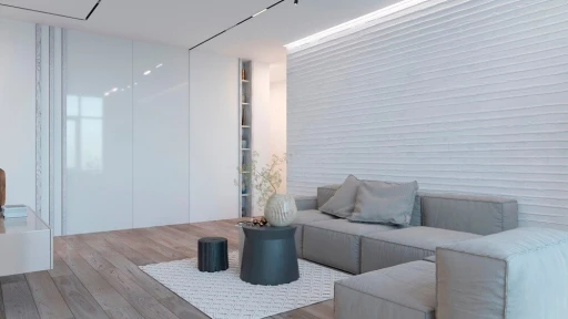 "Uwielbiam kreować wnętrza monochromatyczne, oparte na prostym schemacie kolorów, ale bogate w rozwiązania teksturalne"- mówi Victoria Yakusha - "Pozwalają mi one stworzyć grę odcieni i faktur na różnych powierzchniach, nawet w bardzo minimalistycznych przestrzeniach”. W kijowskim apartamencie architektka zestawiła płaszczyzny wykonane z drewna czy gliny, a także różne rodzaje wykończeń m.in. tynk i beton. W holu mieszkania efektownym elementem jest mozaika z gliny. Wszystkie jej fragmenty różnią się deseniem i odcieniem, ale razem tworzą interesującą kombinację, która natychmiast przyciąga wzrok. Z kolei w salonie jedna ze ścian odtwarza motyw ukraińskiego domu "mazanki" z dekoracyjną strukturą wykonaną specjalną techniką.