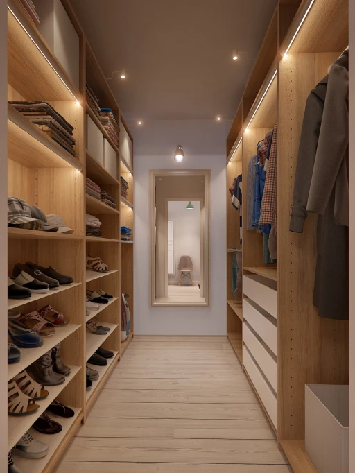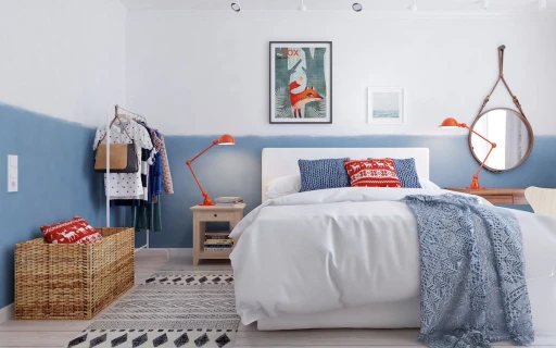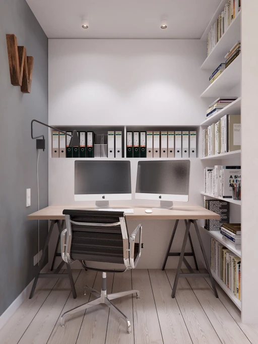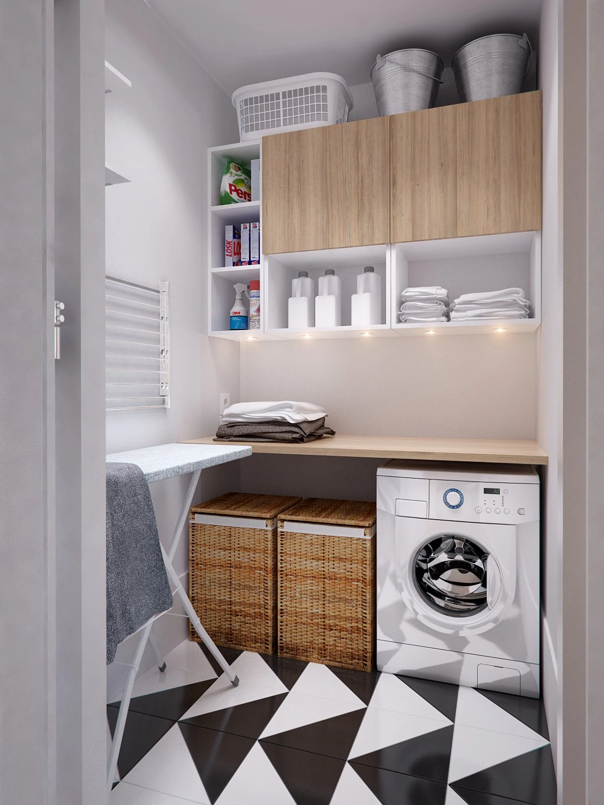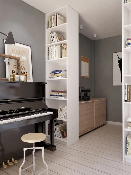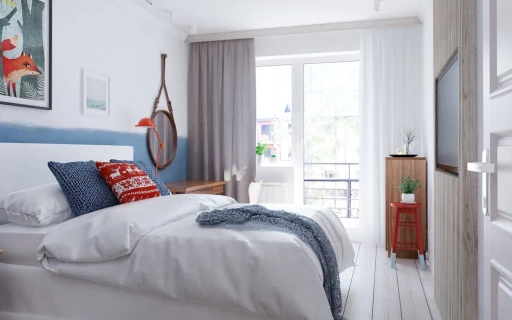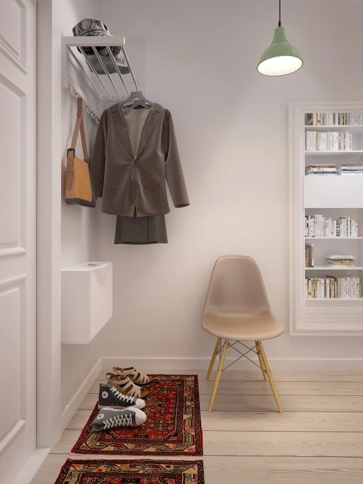 Projekt apartamentu powstał na zamówienie młodej pary. Głównym celem architektów było stworzenie jasnej, dobrze oświetlonej, otwartej przestrzeni salonu i włączenie w nią aneksu kuchennego, jadalni i miejsca do pracy. Projektanci sprytnie i nowatorsko wykorzystali balkon i zamienili go w „pudełko” ze sklejki, zyskując dodatkową przestrzeń. Zastosowanie kolorystyki opartej na bieli, beżu oraz odcieniach pasteli nadało mieszkaniu ciepła i przytulności. Oceaniczny niebieski i czerwone akcenty wprowadziły do sypialni spokój ze szczyptą pikanterii, tak potrzebnej młodym ludziom. Dobór materiałów, barw oraz mebli spowodował, że wnętrze jest bardzo skandynawskie w klimacie.