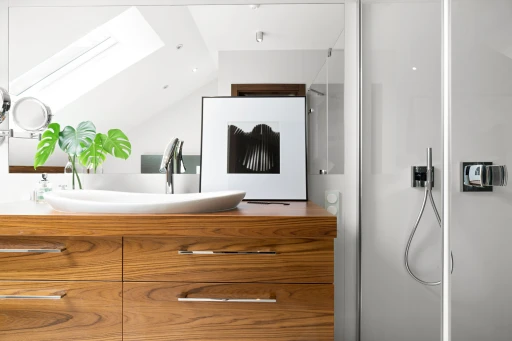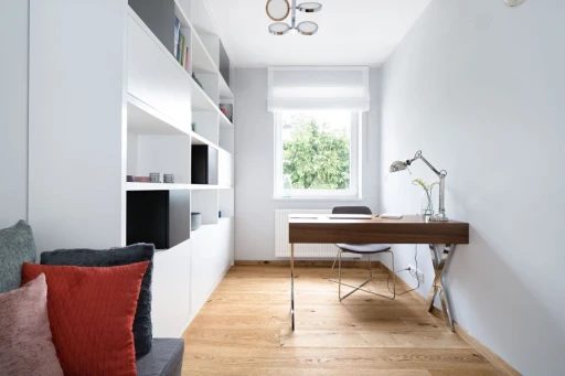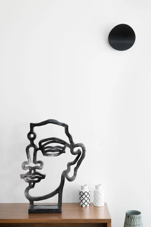 Najbardziej osobistym akcentem mieszkania są rysunki, grafiki, obrazy i rzeźba. W każdym pomieszczeniu znalazło się miejsce na unikalną ozdobę, która dopełnia portret właścicielki. W sypialni umieszczono wyraziste płótna Zbigniewa Nowaka przedstawiające kobiece sylwetki, a przy wejściu do mieszkania dwie barwne akwarele. Nawet w łazience znalazło się miejsce na czarno-białą abstrakcyjną grafikę. Honorowe miejsce w salonie zajmuje rzeźba autorstwa Marii Niewiadomskiej – pół twarzy wyprofilowanej w autorskiej technice. Motyw ażurowej konstrukcji został podchwycony przez architektów, czego dowodem jest oryginalna wolnostojąca umywalka w dolnej łazience, żyrandol nad schodami, a nawet drobne dekoracje (misy na owoce). Wszystko w tarnowskim apartamencie tworzy harmonijną i przemyślaną kompozycję.