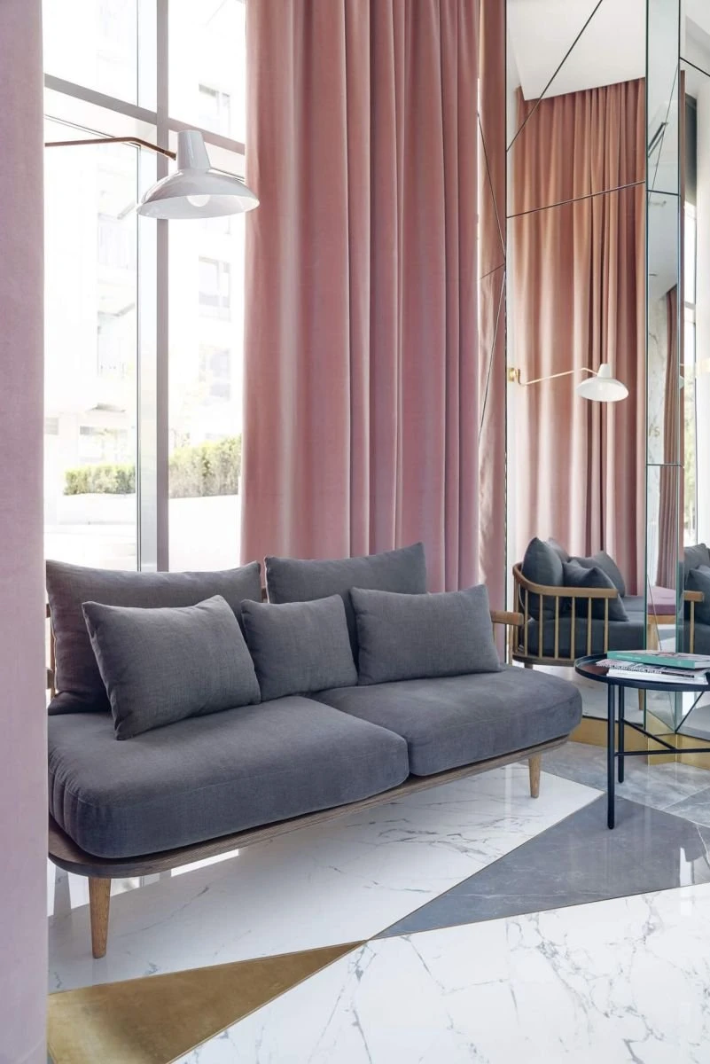 Na nowym osiedlu Nadmorze w Gdańsku kryje się wnętrze, które zachwyca od chwili przekroczenia progu. Delikatny, pastelowy róż łączy się tutaj z eleganckim złotem mosiądzu i szlachetnym marmurem, dając ultrakobiece, modne i eleganckie wnętrze.