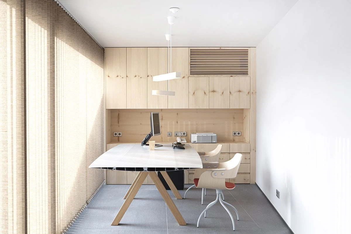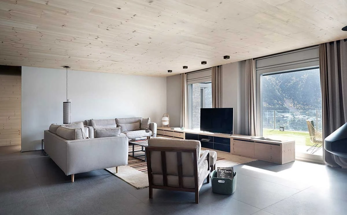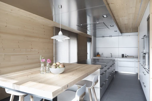 W jego wytworzeniu pomogły ponadczasowe krzesła Eamesów i lampy Henningsena. Jednak najmocniejszym akcentem wnętrz jest jasne drewno – zastosowane we wszystkich pomieszczeniach: zaczynając od łazienek, na salonie kończąc. Wykonano z niego zarówno meble, jak i okładziny ścian oraz sufitów. W połączeniu z kolorem szarym dominującym na podłogach i pozostałych ścianach, daje to elegancki, a jednocześnie bliski natury efekt. W takich wnętrzach naprawdę można się zrelaksować.