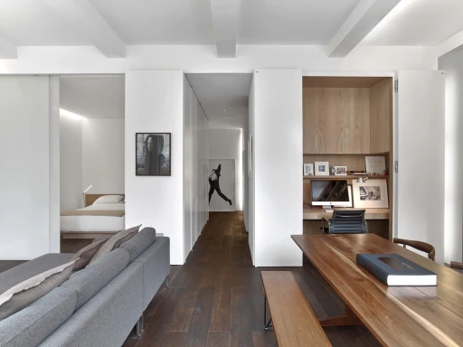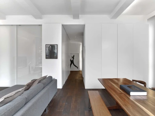Realizacja studia Messana O'Rorke rozpoczęła się od całkowitej dekonstrukcji dwupokojowego mieszkania zlokalizowanego w budynku dawnej manufaktury w dzielnicy Flatiron. Ponieważ za podstawowy element stanowiący o charakterze przestrzeni projektanci uznali wielkie, wychodzące na południe okna, zaproponowali zupełnie nowy układ pomieszczeń, który światło czyni głównym bohaterem wnętrza.
