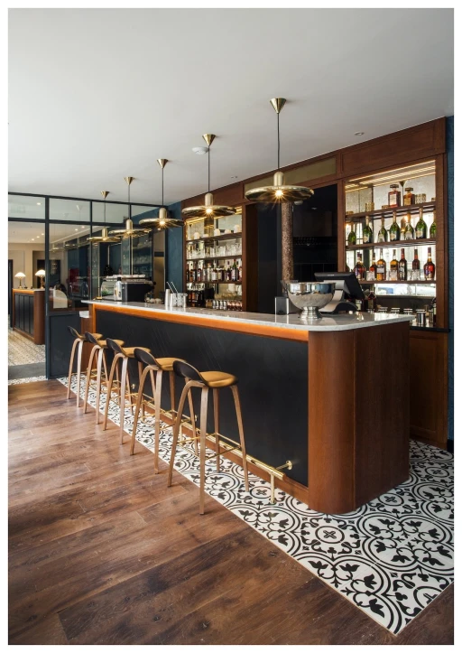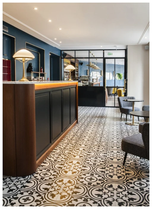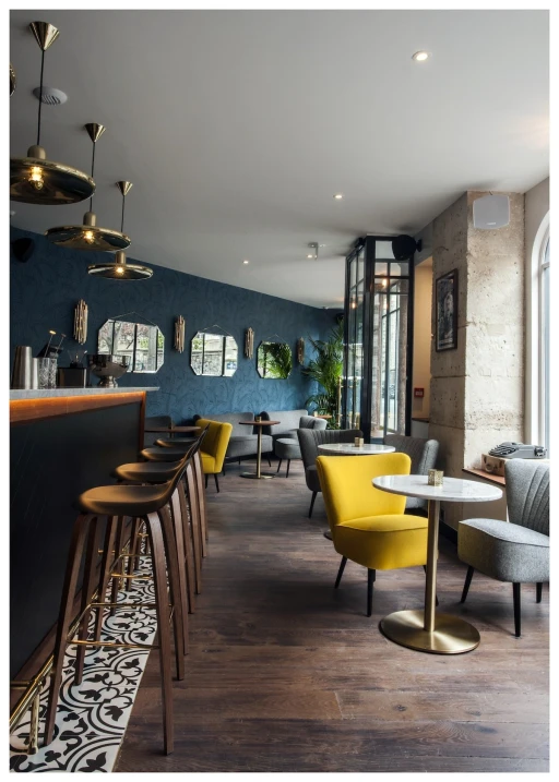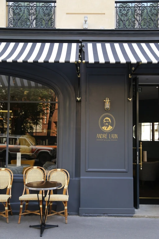 Nowy bar koktajlowy André Latin wita gości 34 miejscami siedzącymi oraz tarasem dostępnym bezpośrednio z ulicy. Ciepła atmosfera, która panuje we wnętrzu została uzyskana przez precyzyjne skomponowanie mebli i dodatków. Meble są zaprojektowane wyłącznie przy użyciu szlachetnych materiałów — znajdziemy tu wygodne sofy w tweedowych tkaninach, marmurowe blaty stołów, krzesła z litego drewna. Ogromnie ważne są detale: lustra, grafiki, tapety, a także oświetlenie. Hotel doskonale odzwierciedla ducha Dzielnicy Łacińskiej i podobnie jak ona jest otwarty na wszystkie pokolenia.