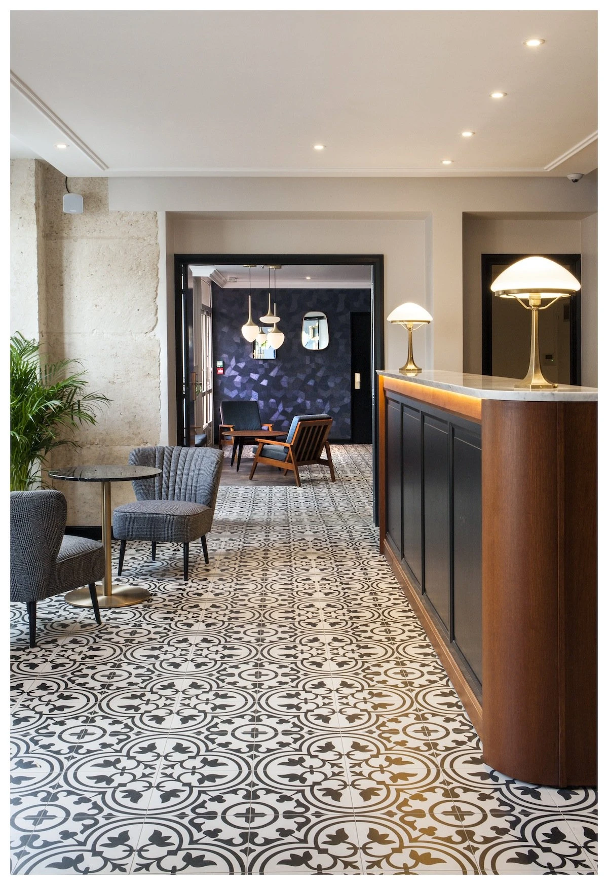 Po wielu miesiącach prac remontowych Hôtel André Latin zaprezentował zupełnie nowe oblicze. Nowy wystrój został zainspirowany Belle Époque i osobą André Sodano, znanego dandysa XIX wieku. Architekt — Michael Malapert — zaaranżował na nowo hotelowe wnętrza, inspirując się kultową erą, ale wzbogacając jej wyraz nowoczesnymi akcentami. Celem renowacji było stworzenie dialogu między przeszłością i przyszłością, poetyckiej wnętrzarskiej metafory, oddającej urok miejsca i jego historię (niektóre oryginalne elementy konstrukcyjne hotelu zostały zabezpieczone, aby podtrzymywać dziedzictwo budynku).
