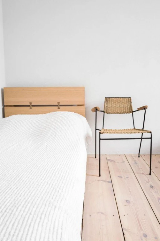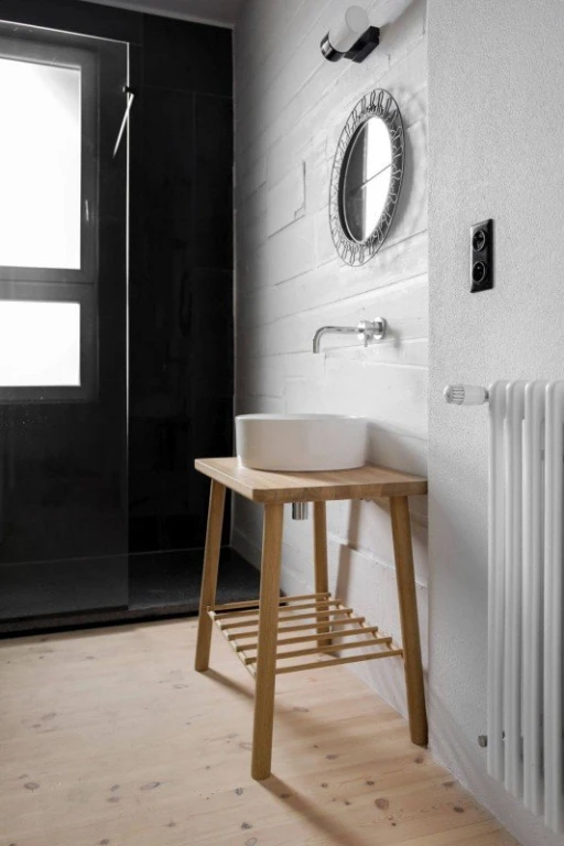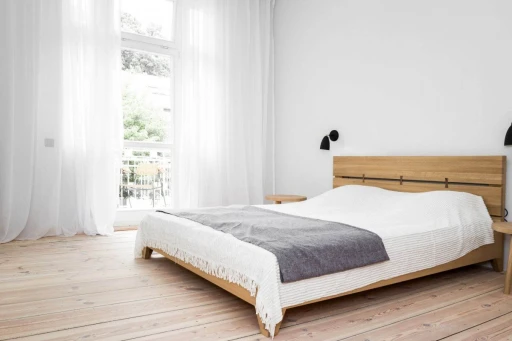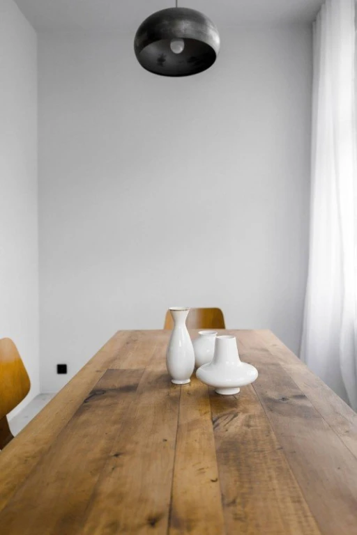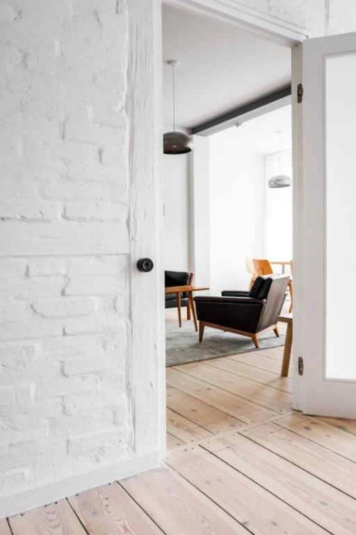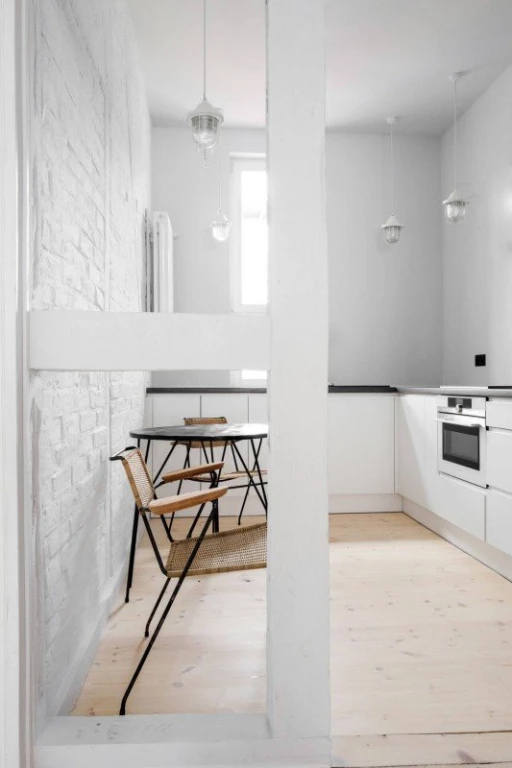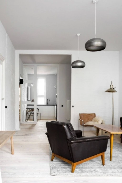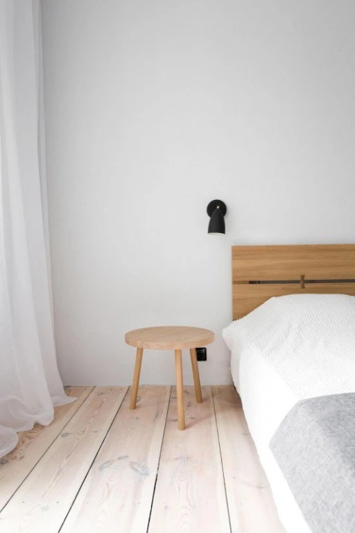 Dom wyposażony został w meble zaprojektowane przez Loft Kolasiński: stoliki nocne i stolik w łazience, łóżka, ławki. Projektanci sięgnęli również po poddane uprzedniej renowacji oświetlenie, meble i dywany vintage, pochodzące z Polski, Czech, Danii i Włoch. Budują one atmosferę autentyzmu i świetnie nawiązują do modernistycznego kontekstu kamienicy, w której mieści się zrewitalizowany apartament.