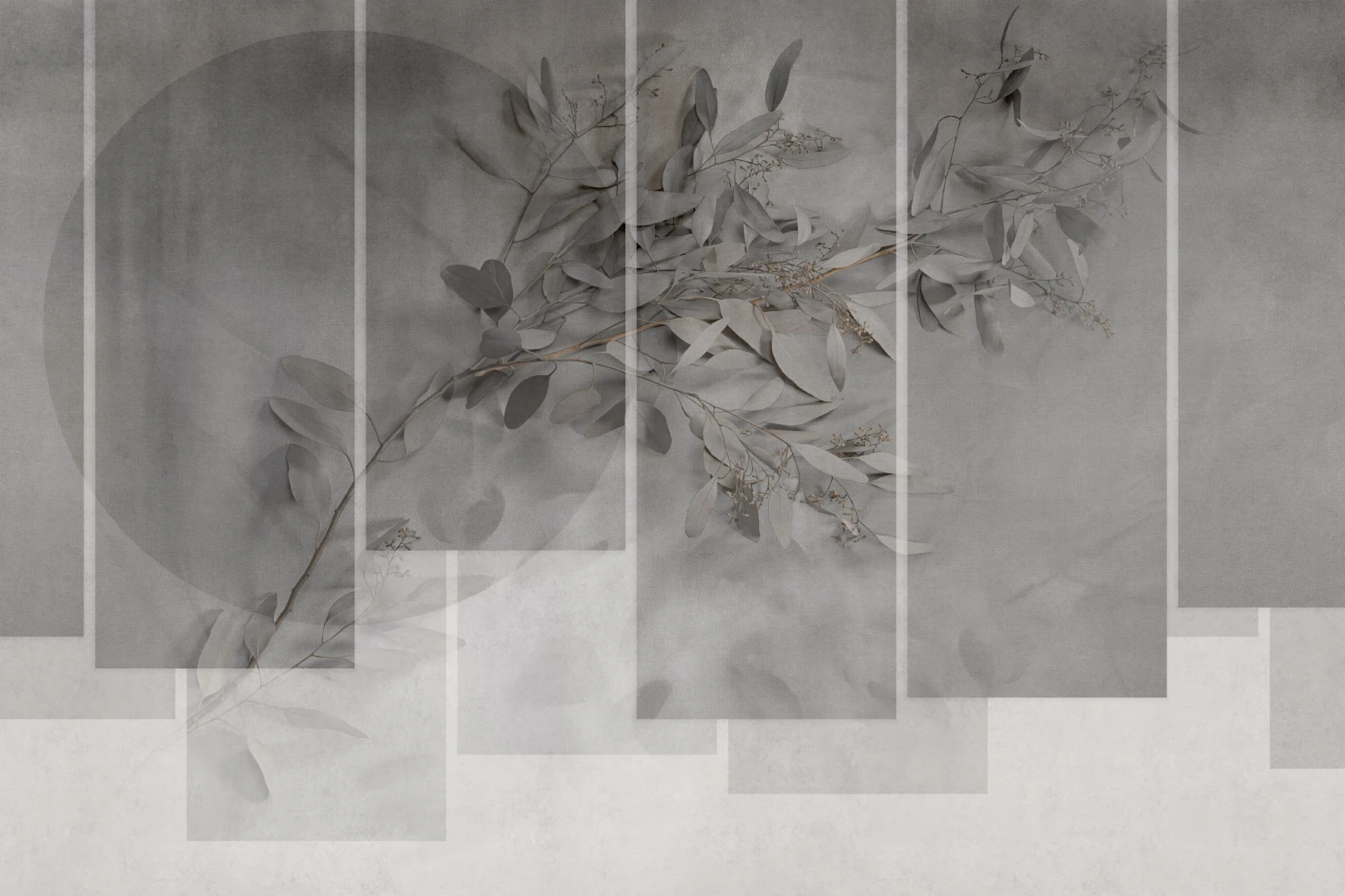 Liście prowadzą wzrok poziomo przez ścianę, tworząc naturalny rytm, który uspokaja przestrzeń i nadaje jej miękkości.
