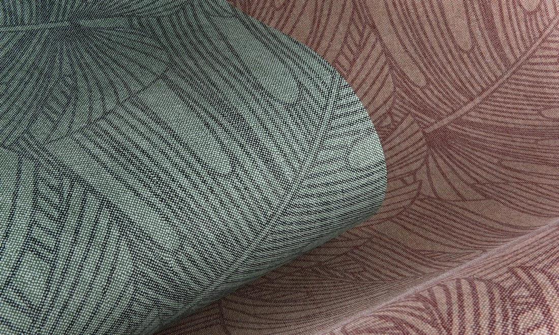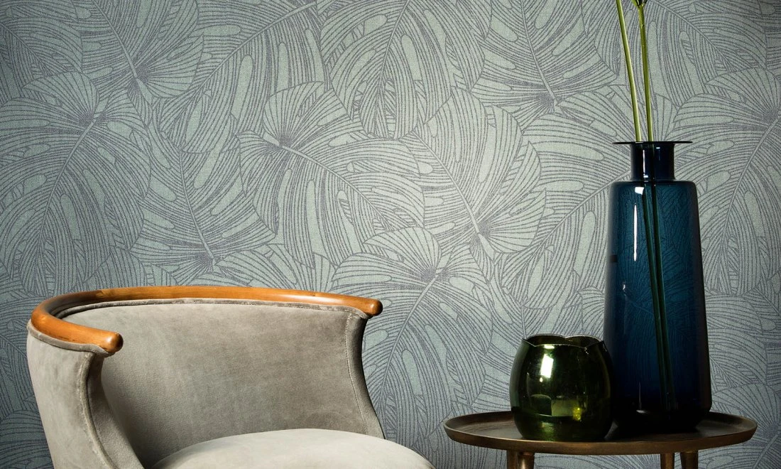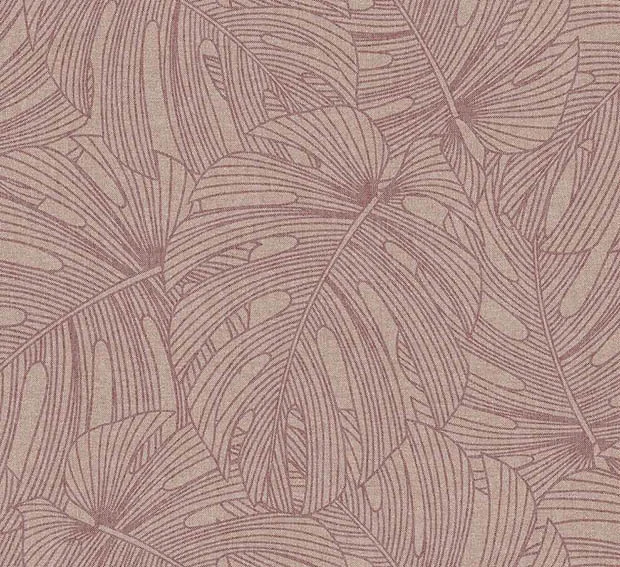 Tapeta L’Aventure kolekcji Flamant Les Mémoires charakteryzuje się znanym kwiatowym motywem liści monstery i pastelowymi kolorami.