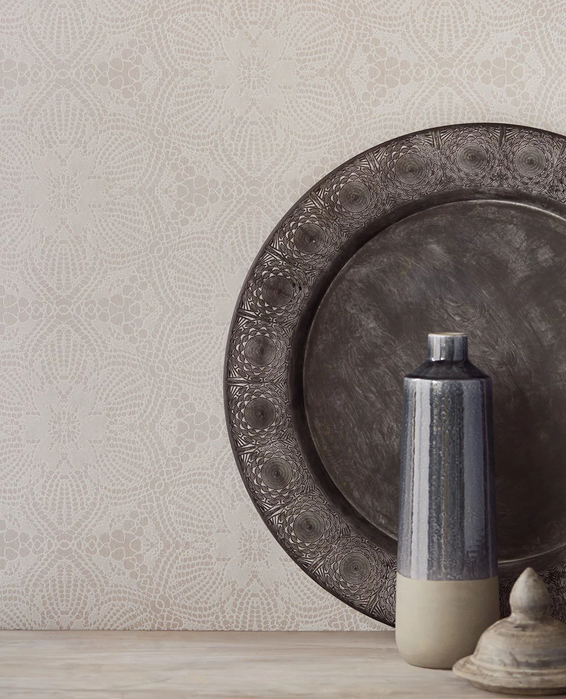 Tapeta Siroc od Eijffinger (376058,376057,376056,376055,376054,376052,376050) to elegancka okleina z fantazyjnym matowym wzorem przypominającym koronkowe kwiaty na perłowym tle. Tapeta będzie idealną bazą dla wnętrz klasycznych, rustykalnych czy etnicznych.